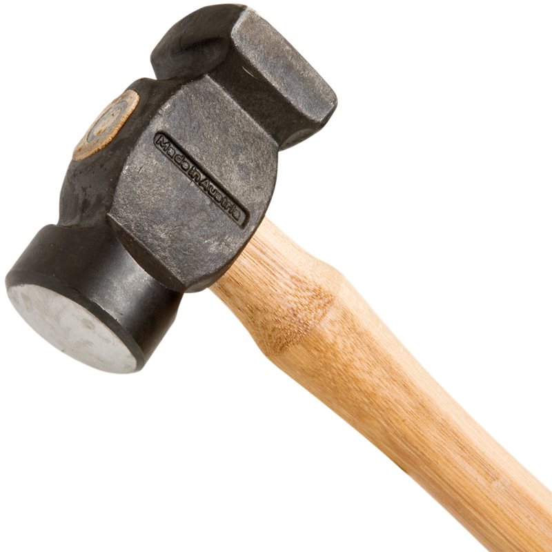 Den mindre väger 950g och den större väger 1100g. Den tredje modellen har en plan fyrkantig sida och en rundad sida. Den välbalanserade smideshammaren gör det lättare att smida med maximalt kraftutnyttjande. Handtaget är väl tillpassat och låst med en ringkil i stål.