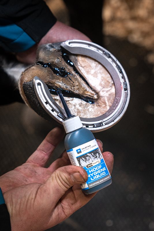 Hoof Hygiene Liquid är en lösning som behandlar och förebygger strålröta, hålväggar och bärrandsröta och håller hovarna i ett hälsosamt skick. Denna produkt optimerar tillståndet för strålen och vita linjen. Baserad på koppar, zink och Aloe Vera.